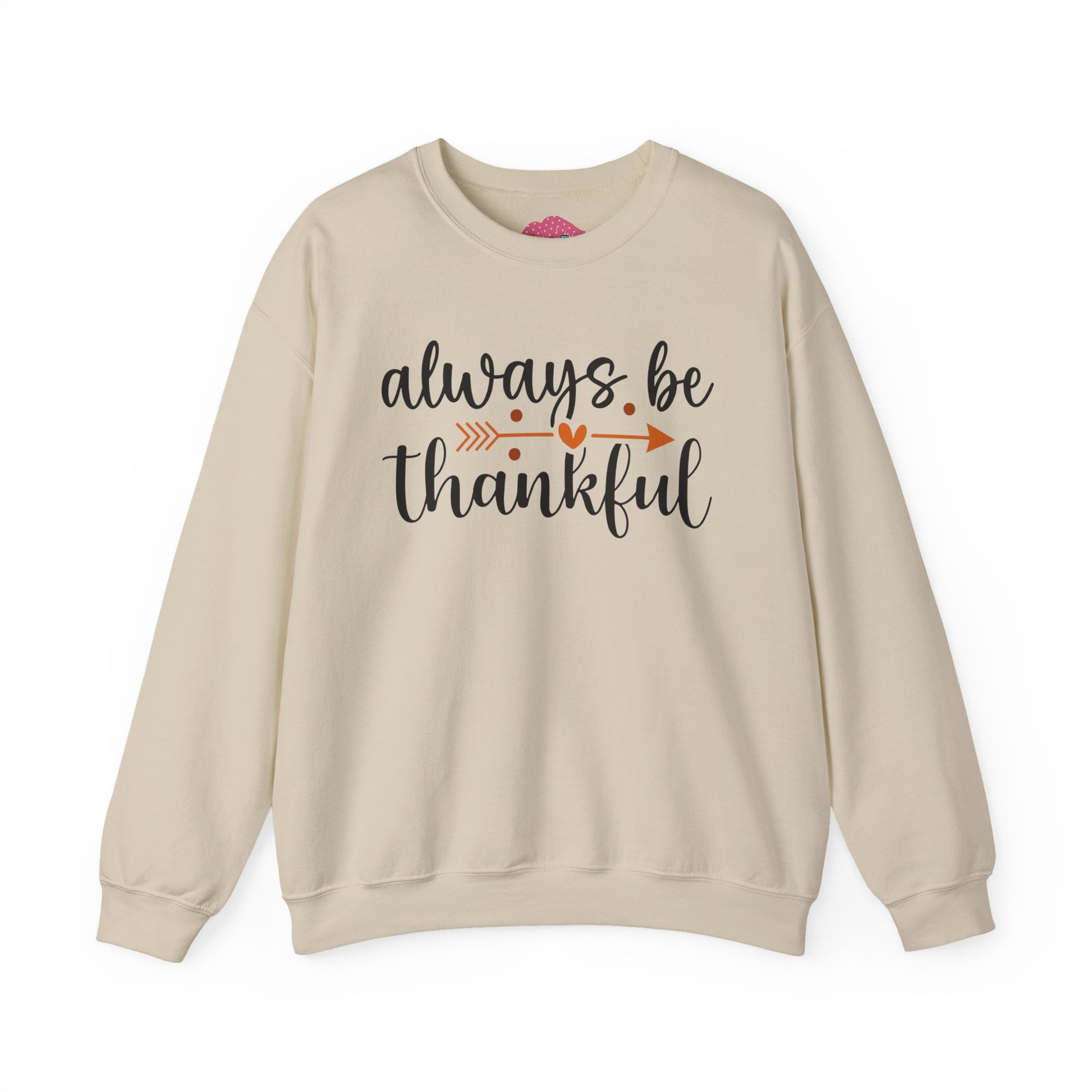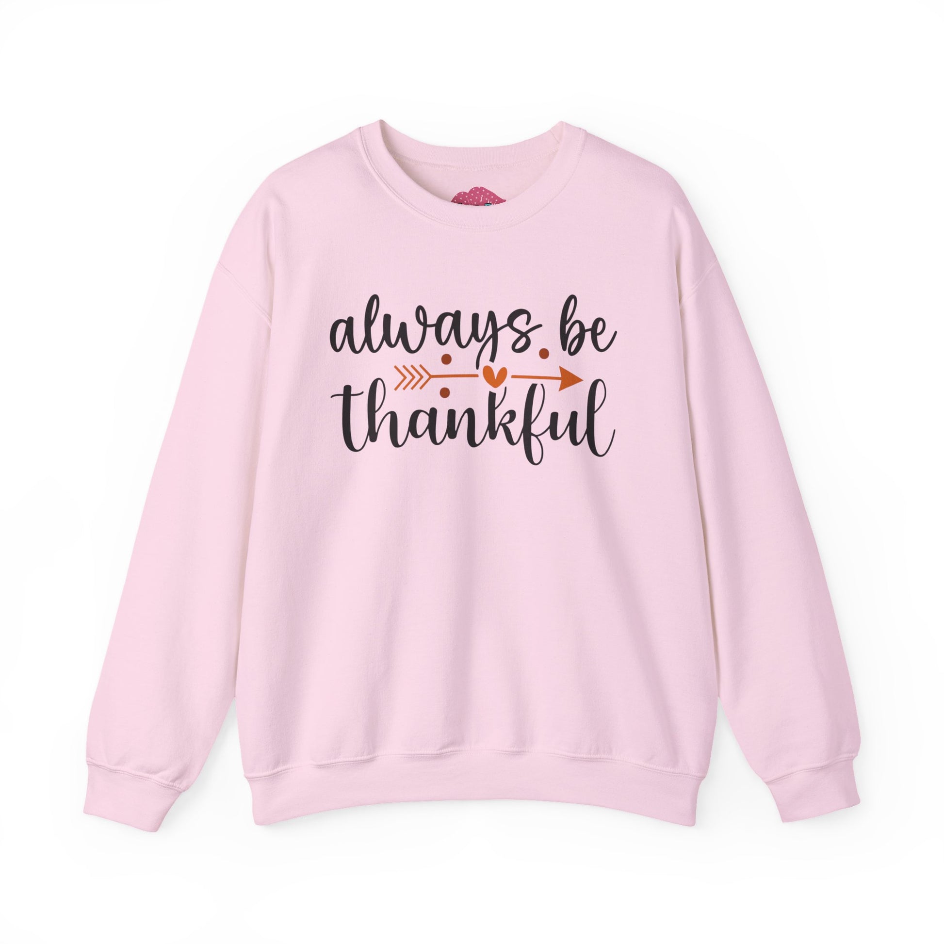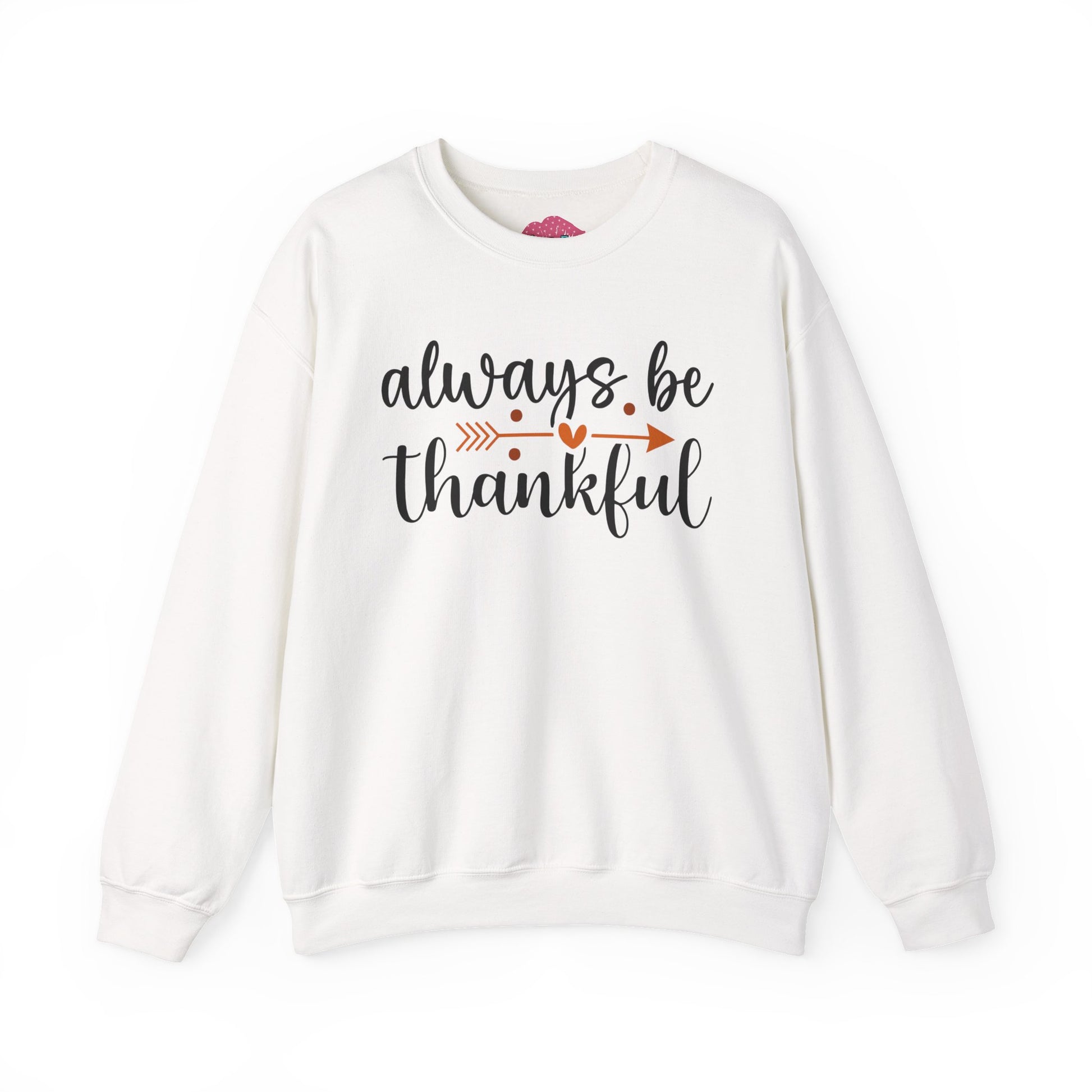 Embrace gratitude in style with this cozy crewneck sweatshirt. Perfect for those chilly mornings or relaxed evenings, it exudes a warm and inviting vibe. The minimalist yet heartfelt design, "always. be thankful," makes it a lovely reminder of appreciation. Ideal for casual wear, it seamlessly fits into your everyday wardrobe. Whether you’re at home, running errands, or meeting friends, this sweatshirt is a fabulous addition to your life. It makes a thoughtful gift for friends and family during holidays like Thanksgiving, or simply to spread positivity anytime. Suitable for adults, this sweatshirt caters to those who cherish comfort and stylish reminders of gratitude.