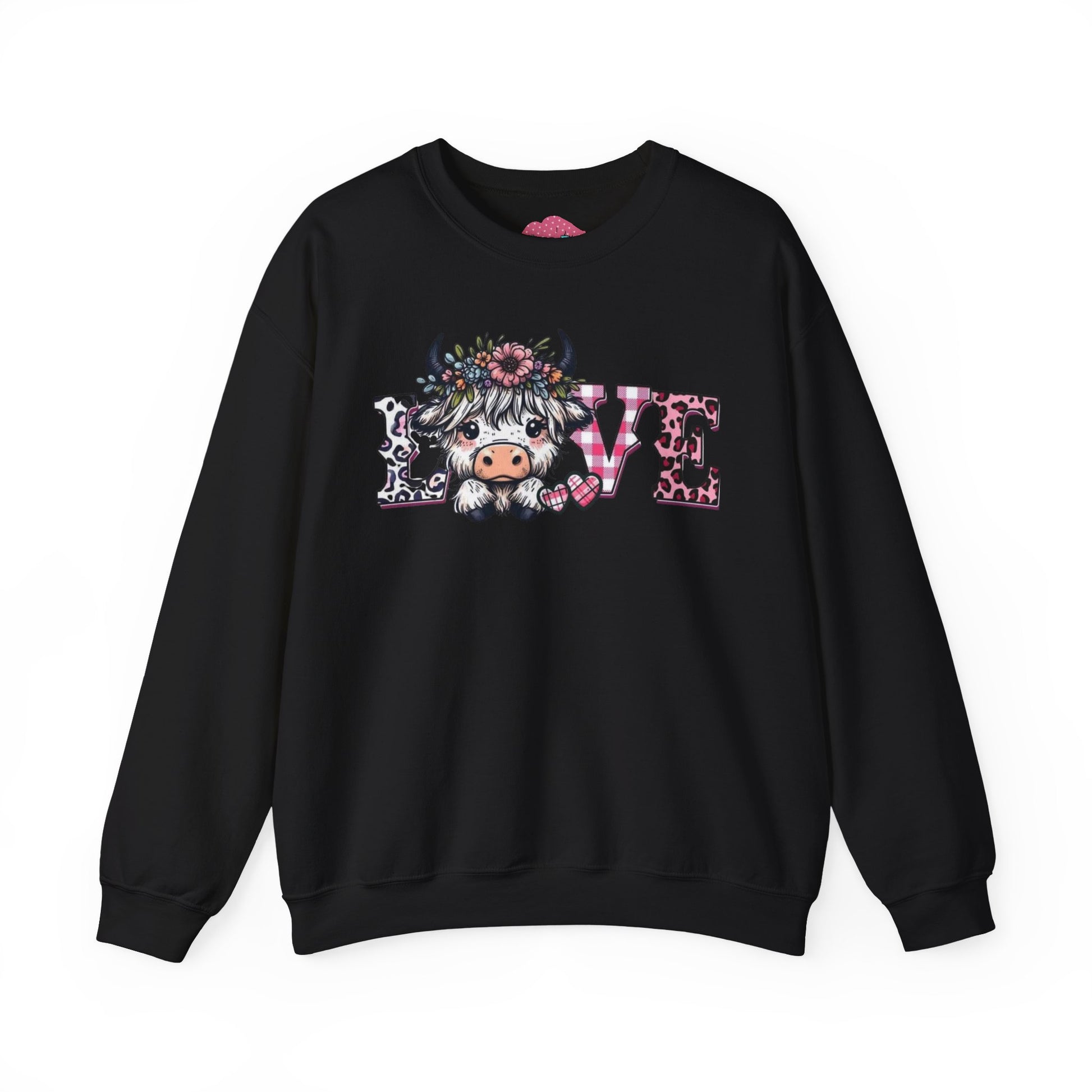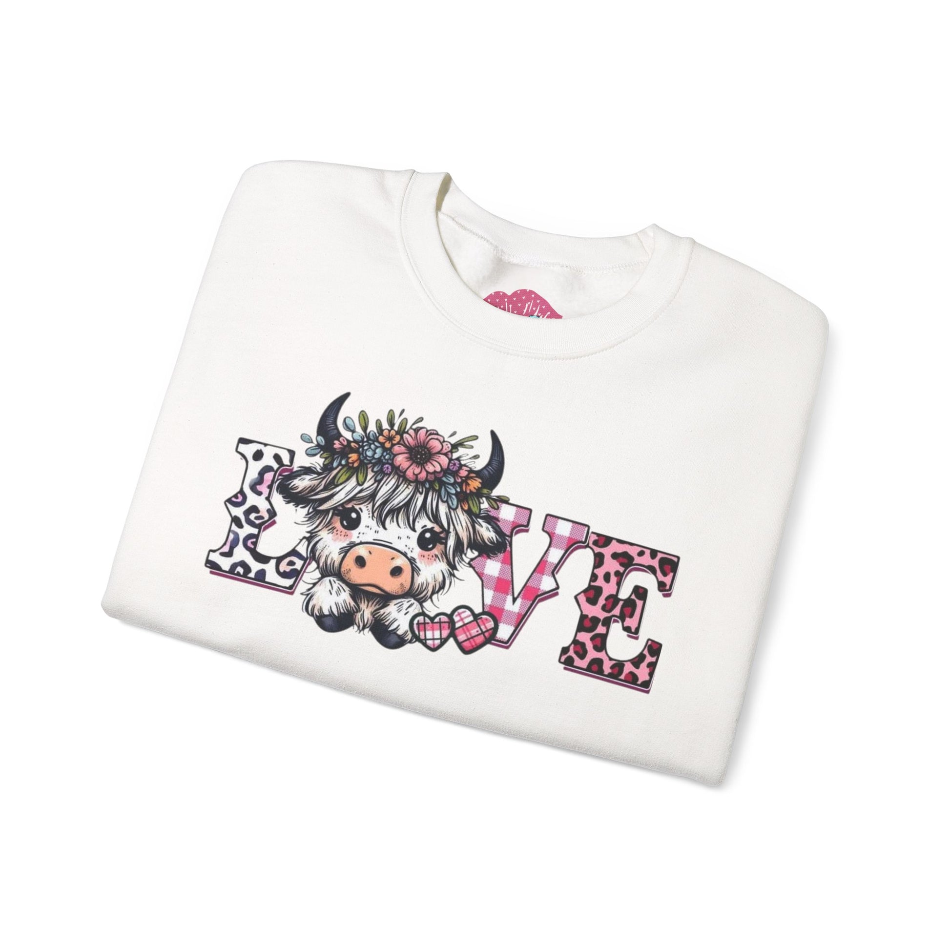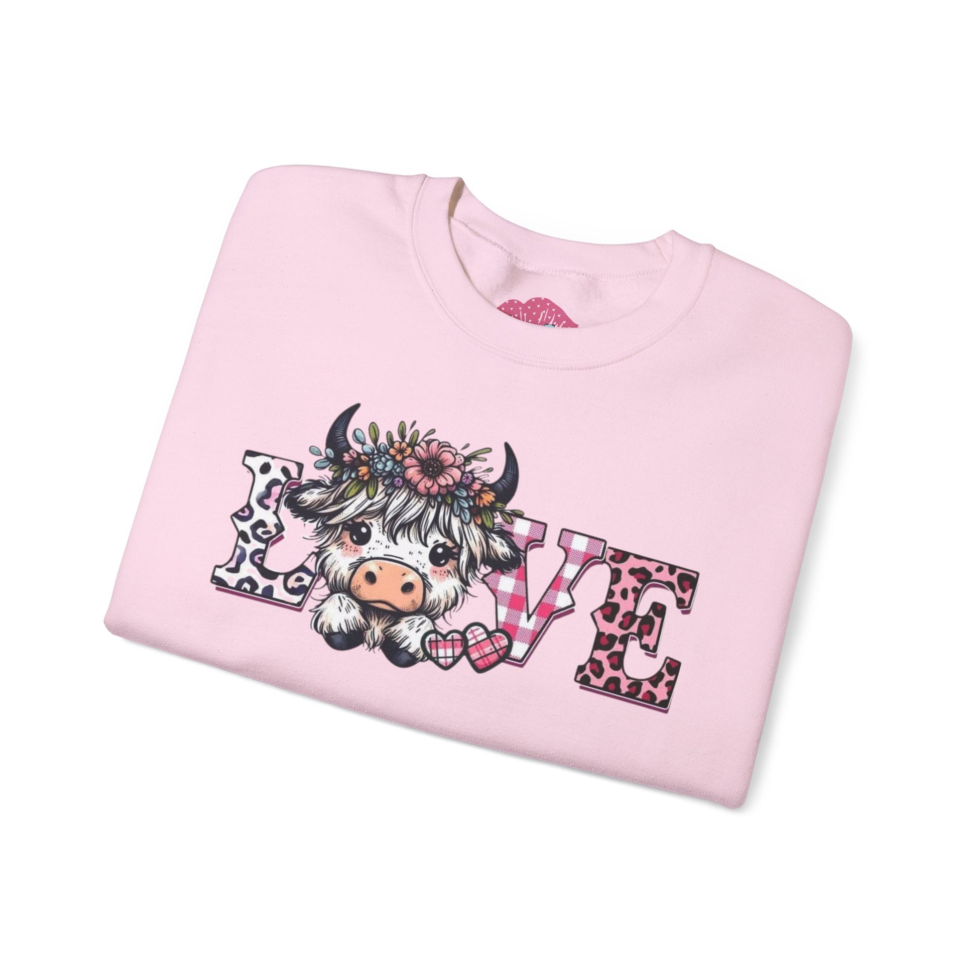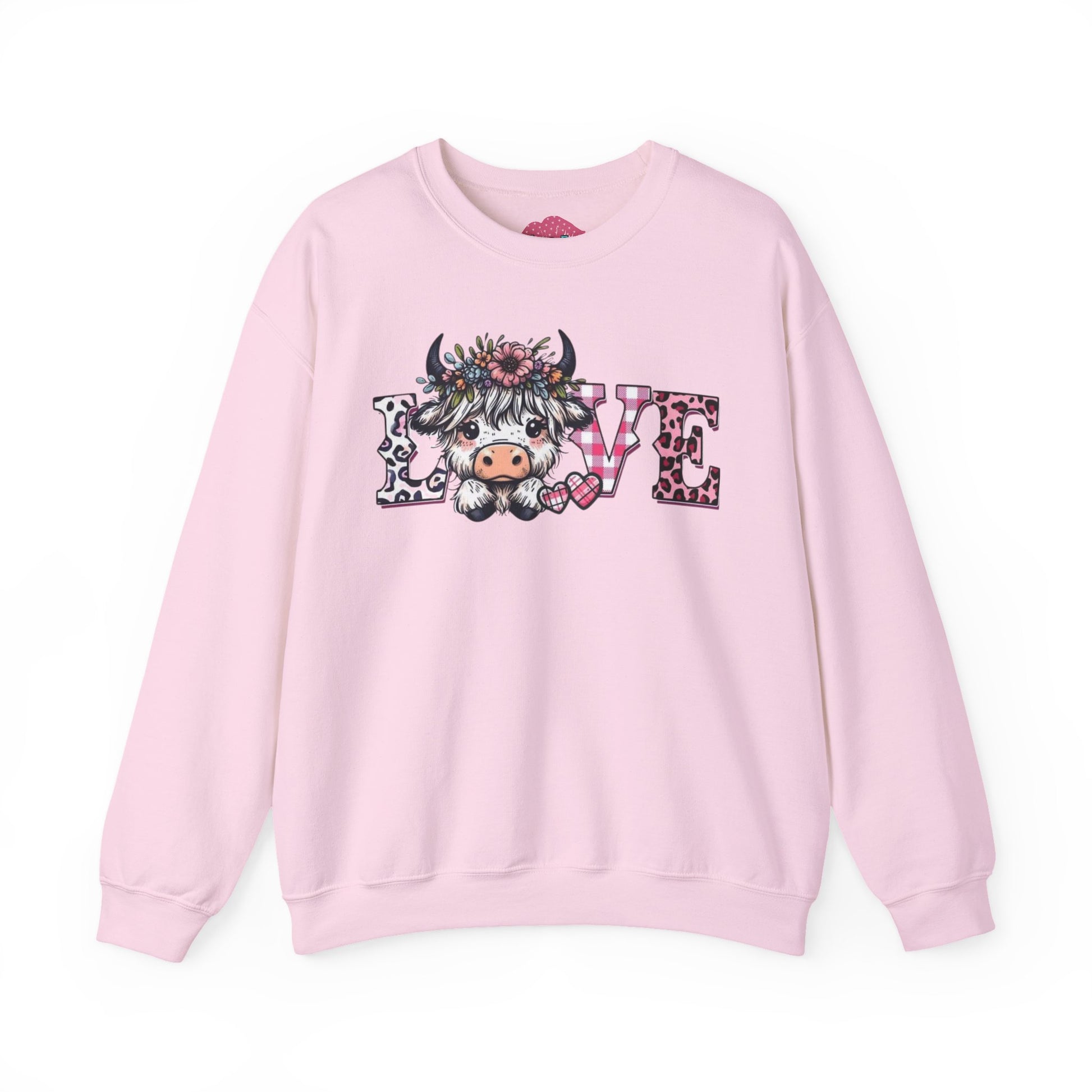 This soft, medium-weight crewneck brings a gentle, cozy vibe to everyday wear. The front features a whimsical “LOVE” design with a floral, cow-character motif that feels playful and heartfelt — like a warm hello from a countryside friend. The classic fit and ribbed crew collar create an easy, relaxed silhouette that layers well over shirts or under jackets. Built to hold up, the double-needle stitching and quality cotton-poly blend resist pilling while staying comfortable against skin. Subtle production details — tear-away neck label, OEKO-TEX dyes, and ethically sourced cotton — add thoughtful durability and conscience to a sweatshirt you’ll reach for again and again.