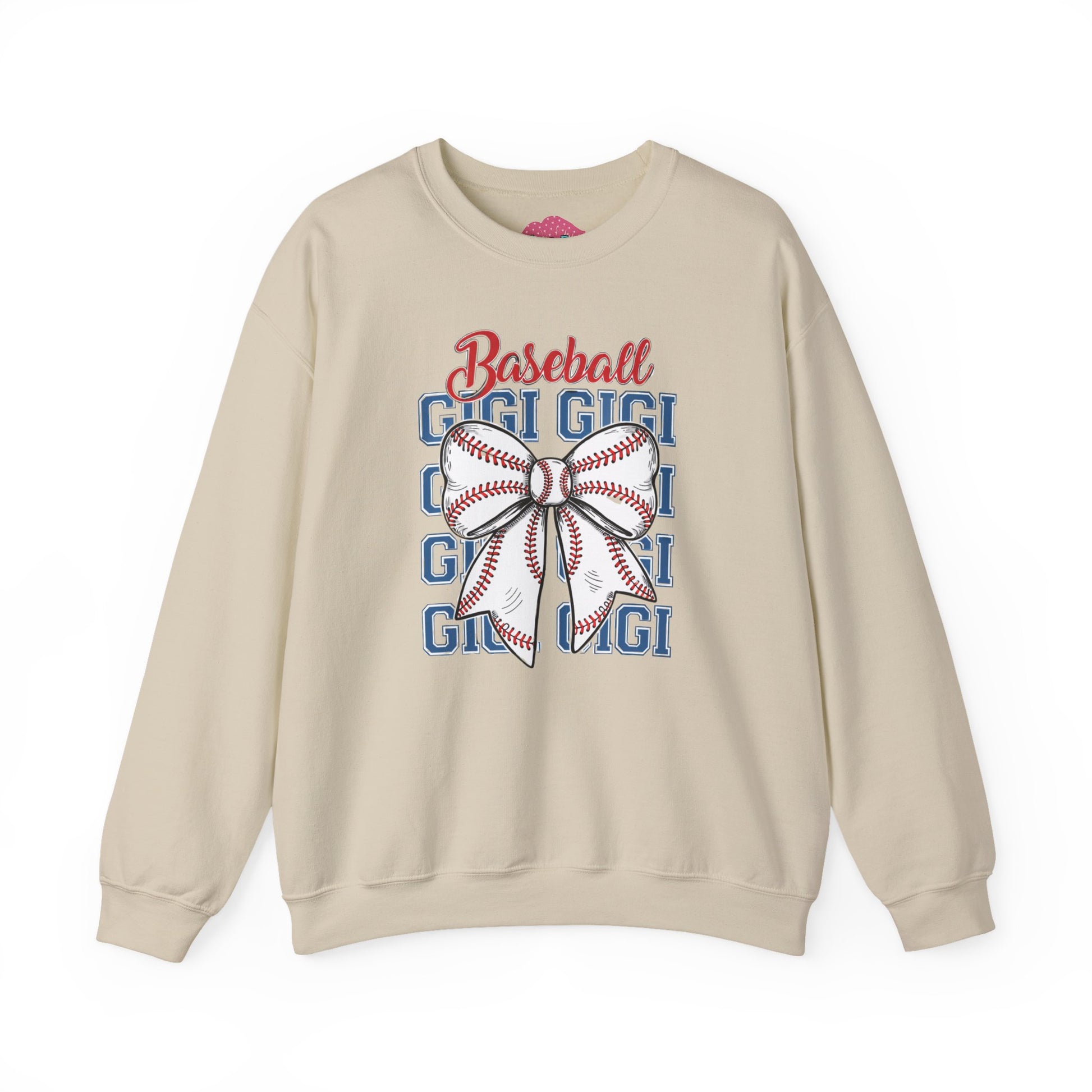 Soft, familiar, and quietly proud — this crewneck brings the ballpark home. A roomy classic-fit sweatshirt with a vintage-inspired “Baseball” script and a stitched-look bow made from baseball seams sits over repeating GIGI type for a playful, layered effect. It’s the kind of sweatshirt you pull on for cool evening practices, bleacher-side chats, or slow Sunday mornings with coffee and scorecards. The medium-heavy cotton-poly blend feels substantial without being stiff; ribbed collar and cuffs keep shape after many washes. Subtle printed neck and wrist labels and optional embroidered accents give it a handcrafted, team-spirit feel that reads personal and thoughtful rather than loud.