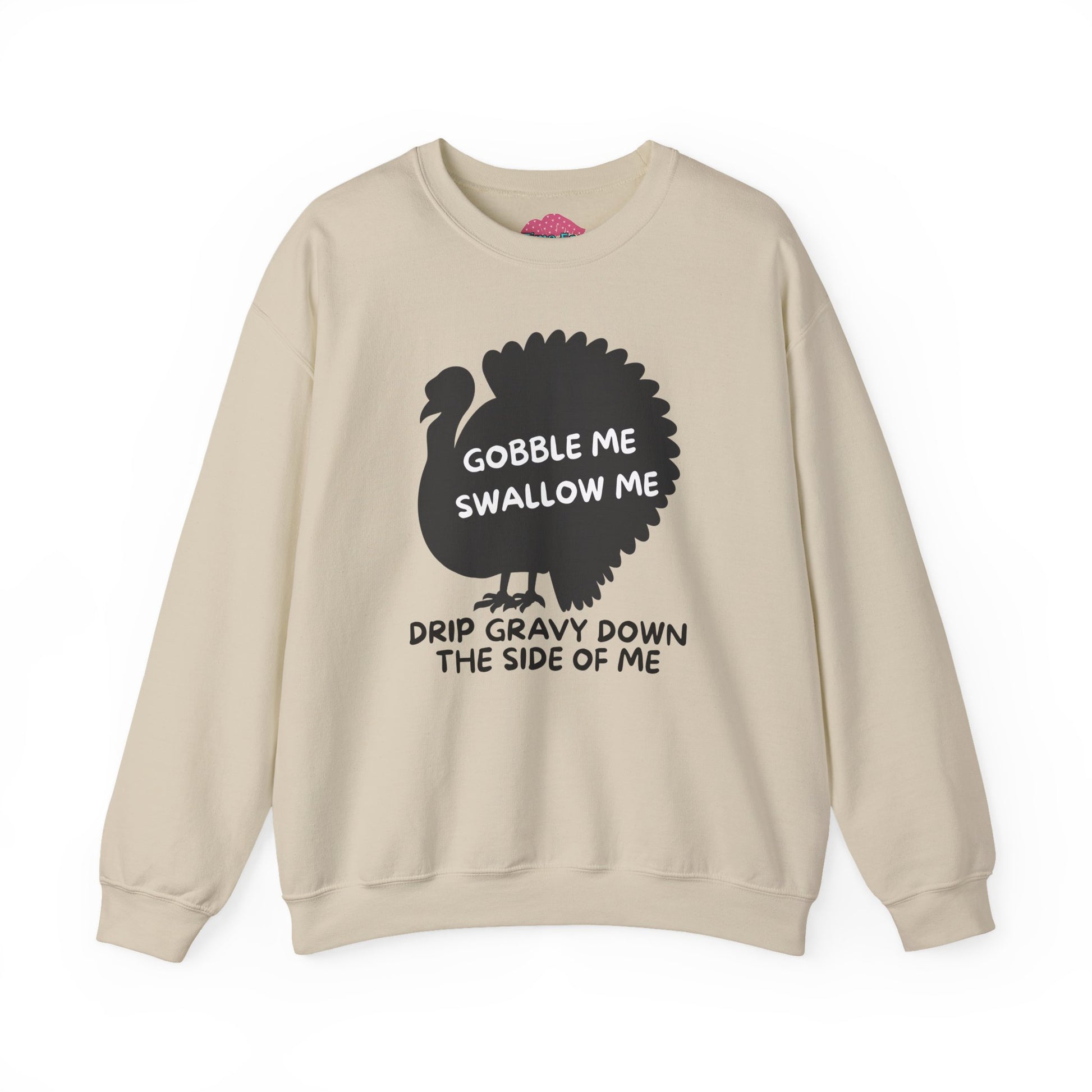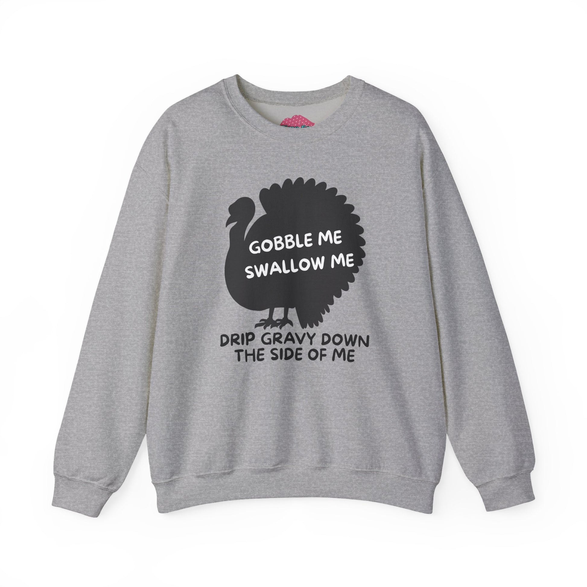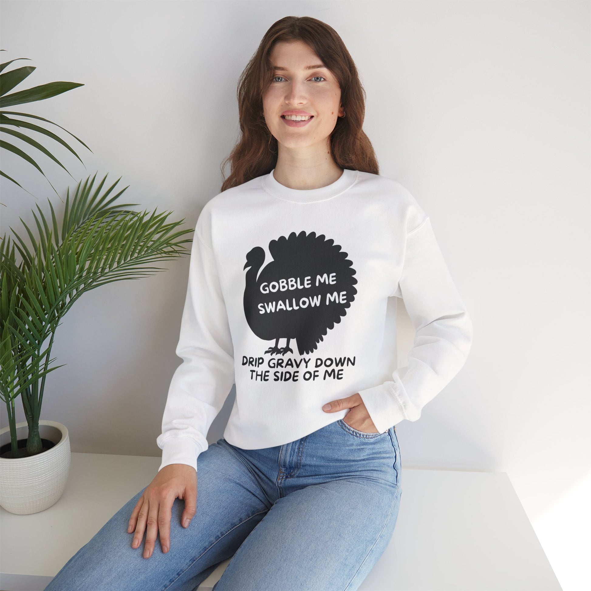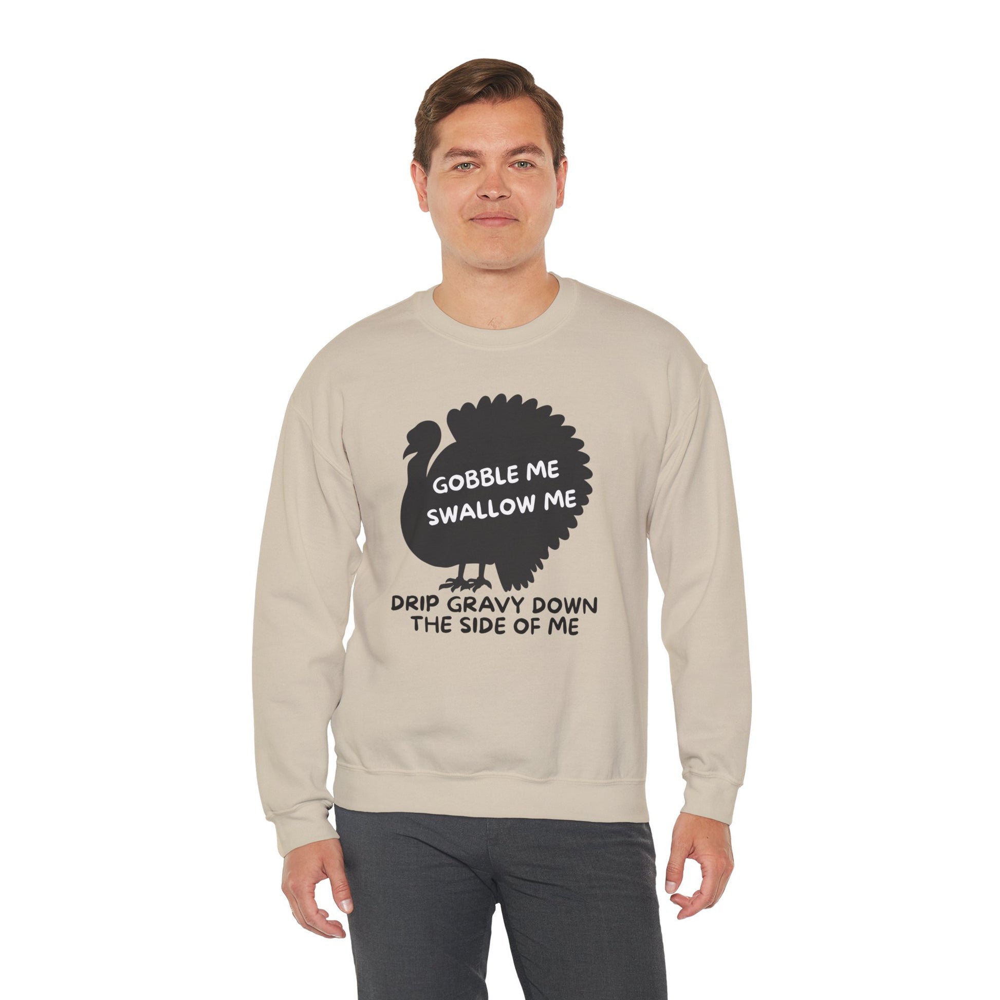 A cozy, midweight crewneck sweatshirt that brings playful Thanksgiving energy to your chill days. Soft yet sturdy, it wears in comfortably with a classic cut and ribbed collar that keeps its shape. The front features a bold turkey silhouette with cheeky lettering that reads like a wink across dinner table banter. It sits naturally in casual routines — from kitchen prep to post-feast lounging — and blends durable construction with a lighthearted voice.
